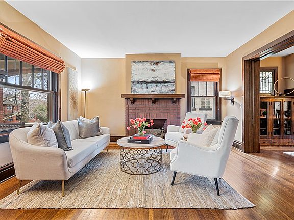 Stunning home with many period detail & tasteful updates in this stately Regent Square craftsman! This exceptional home on a picturesque street will captivate you with it’s original woodwork, quality craftsmanship, built-ins & stained glass. The welcoming front porch leads to the original leaded front door & stunning entry with original paneled staircase. The gracious living room has many period details in place including original mantle & pocket doors. In the dining room original woodwork remains inclusive of glass china built in and corner window seat. The kitchen has been thoughtfully renovated and expanded, a powder room has been added off the pantry. The front bedrooms have been combined to create a lovely Primary bedroom suite with large dressing area. The hall bath has been fully renovated. The 2nd flr has two additional bedrooms one that is perfect for a home office. The 3rd floor has another bedroom & an additional room.