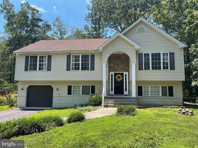 This home has 5 true bedrooms, a nice size kitchen that has a pass through to the living room in addition to a deck off the kitchen dining area. Formal Dining and Living Room off the kitchen. Vinyl plank flooring on main level. Master suite with soaking tub, shower, and dual vanities. The stone fireplace is in the lower level in the recreation room. Enjoy outside time on the rear patio. The 1 car garage is deep for a work area or storage. Great gated community with lake access and ample amenities. Sold strictly as-is.