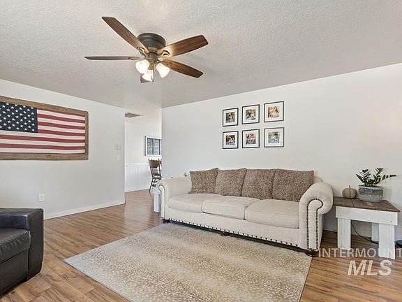 Adorable move-in ready 3 bedrooms 1 bathroom home located in a quiet Payette neighborhood on a dead-end street. The perfect starter home or great for anyone looking to downsize. Generously sized front living room features a large picture window and easy-to-maintain LVP. The bathroom has been fully updated and the home has newly painted neutral colors throughout. Windows have been updated to vinyl. Farmhouse style kitchen includes a pantry, can lighting, and floating shelves plus a refrigerator, range, and microwave. Enjoy the large fenced backyard from the window above the kitchen sink with plenty of space for chickens and/or a garden. Mature trees throughout provide great shade in the summer months. The detached garage/shop and shed add-on allow for extra storage, toys, or a workshop. Call for a showing today!