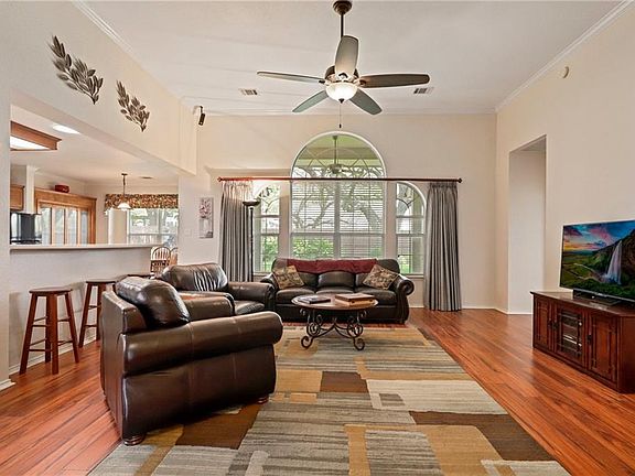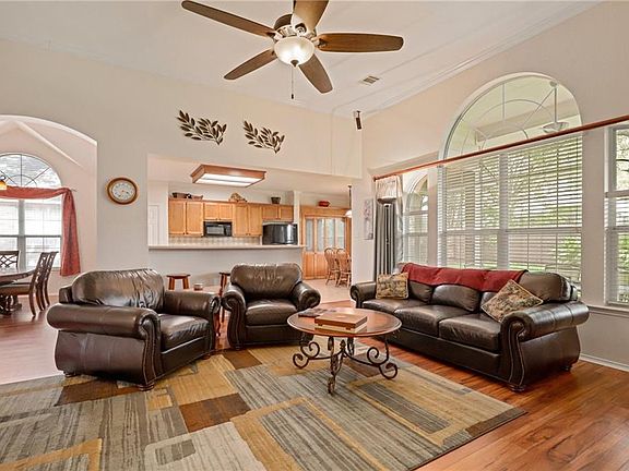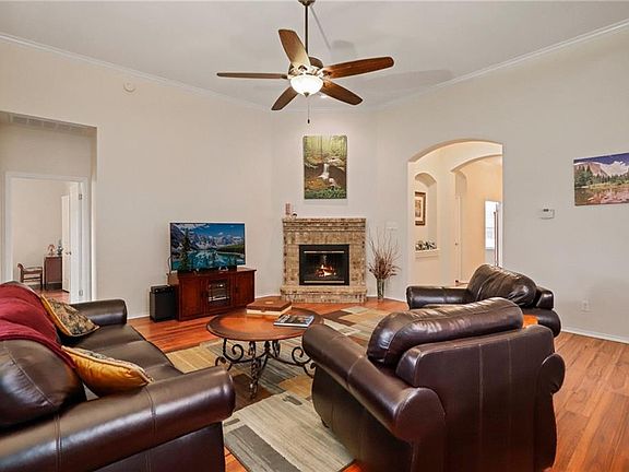 Beautiful meticulously maintained 3 bedrooms, 2 baths home on sought after corner lot. Lots of curb appeal with beautiful mature trees surrounding. Split bedroom plan. Filled with natural light from arched windows. Pella windows in all bedrooms. Wood burning fireplace with gas starter in Great Room. High-grade laminate in common areas and owner's bedroom. Dedicated office could be 4th bedroom. Wired for home theater system in the living room. Kitchen equipped with Corian counters, center island, Kenmore gas oven, custom pantry, and breakfast area. Custom Built cabinet with solid shelves to match the kitchen. Formal dining area perfect for hosting family and friends. Huge owner's en suite overlooks the backyard with window seating, dual vanities, garden tub, and separate shower. Private backyard with covered patio ready for outdoor entertaining. Backyard and side yard landscaped. Excellent location close to shopping and major employers. See the list of updates!