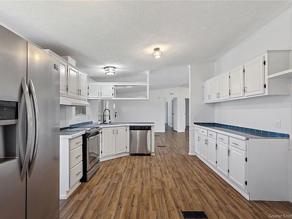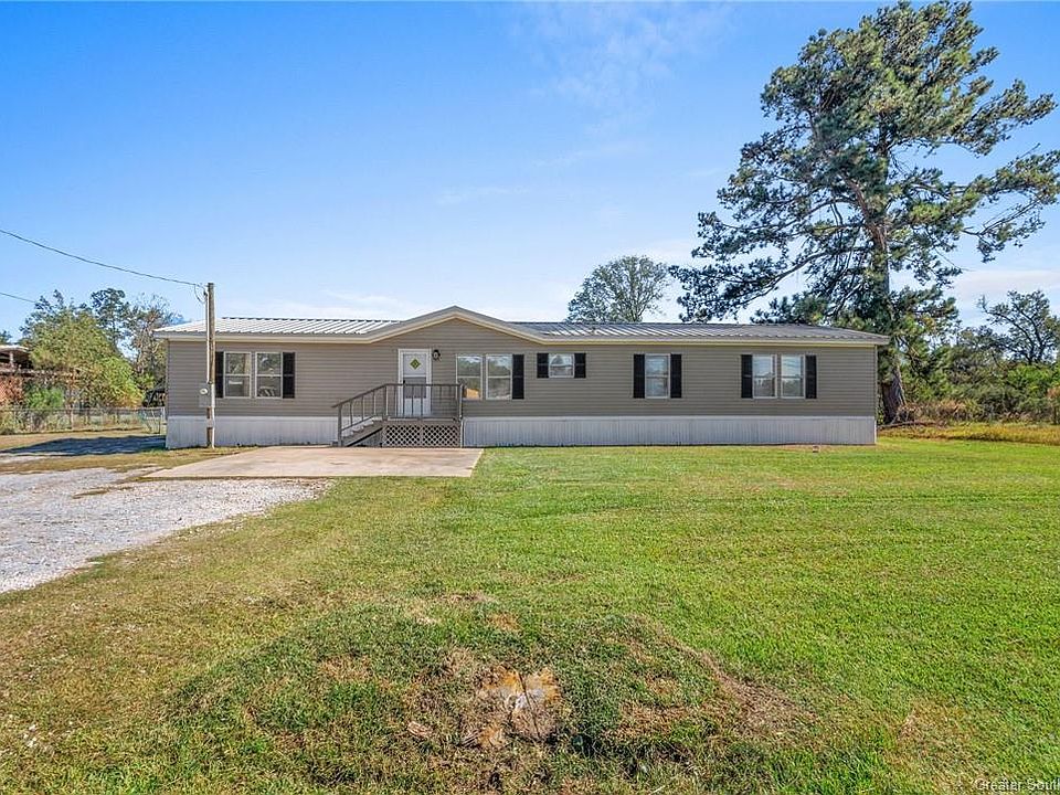 Discover this beautifully updated 4-bedroom, 2-bath Cavalier mobile home on 0.62 acres in Moss Bluff! With 1,902 sq. ft. of living space, this 1997 model boasts new vinyl plank flooring, fresh sheetrock and paint, and a durable metal roof. The open floor plan features a cozy living room with a wood-burning fireplace and French doors leading to the backyard. The kitchen is ready for your culinary adventures with plenty of cabinetry, counter space, and stainless steel appliances. Retreat to the primary suite, complete with a walk-in closet, dual vanities, a soaking tub, and a separate shower. Three additional bedrooms offer flexibility for family, guests, or a home office. Outside, a large shop, a storage shed with a covered area, and a partially fenced yard with mature trees provide endless possibilities. This property combines modern upgrades with a peaceful setting, just minutes from local conveniences. Located in Flood Zone AE. Current owner does not have flood insurance but a flood quote available in supplements. Don't wait--schedule your showing today!