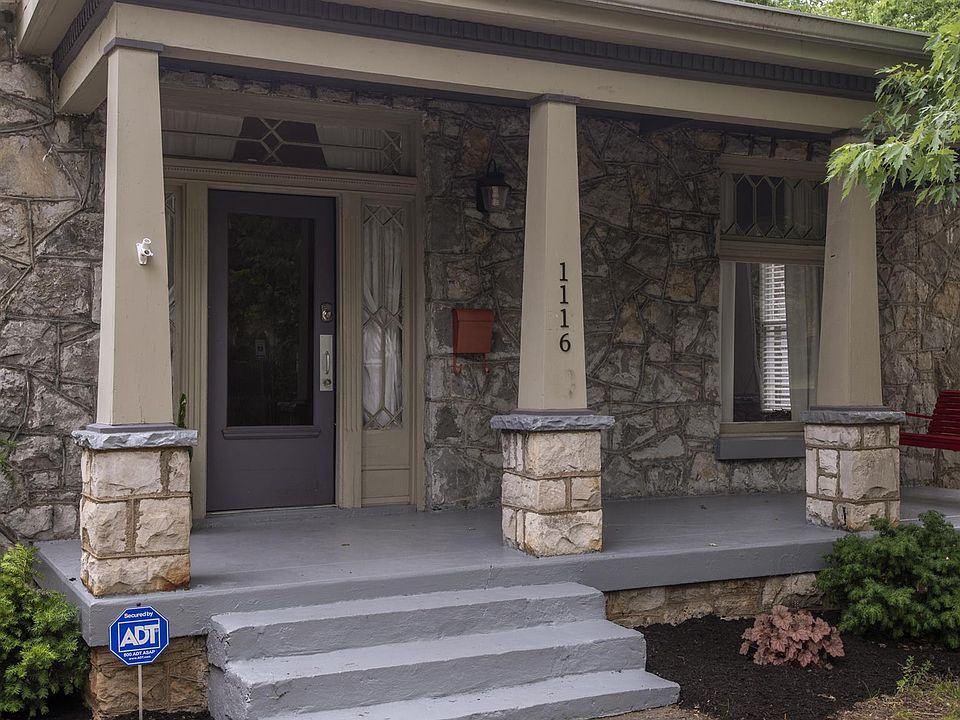 Stone cottage with many original details and great updates. Sweet front porch with swing and covered back porch. Gorgeous windows, wood floors, pocket doors, 10 foot ceilings. Utility room with washer/dryer included. Eat in kitchen, Viking stove, new backsplash, large upstairs master and bath. Massive level lot. Close to Folk, Wilburn Tavern and Downtown.