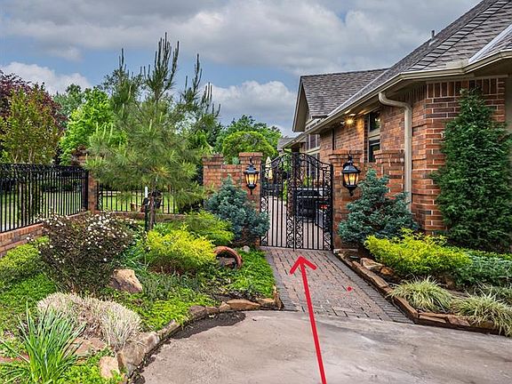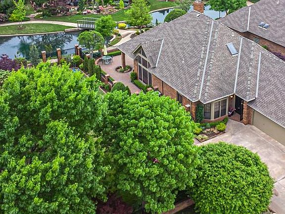 Rare opportunity to own a stunning River Chase home on the pond...with an adjoining Garden Lot! The Single -level home is surrounded by brick pavers from the enclosed, gated front porch and beyond creating side and back patios for additional outdoor living space. The design of the single-level, 2 bedroom home provides efficient use of space throughout with NO STEPS in the interior, timeless millwork, crown molding, deep baseboards and quality cabinetry. A stunning entrance accented with a skylight leads to an organized Chef's Kitchen with newer granite counters and appliances and beautiful cabinetry. The open Living and Dining Area are perfect for gathering with family and friends. A point of focus from all angles is the serene Sunroom with breath taking views of the Garden Lot, Koi Pond and Pool Area. Vaulted ceilings and large windows fill the interior with welcoming natural light enhancing the feeling of openness year round. The Primary Suite is likened to a "Retreat" with vaulted ceiling, a wall of sliding doors, (with custom drapery) sitting areas and private access to a secluded corner of the patio. Primary Bath features a skylight, separate granite top vanities, soaker tub and shower and leads to a pass through laundry. Guest Bedroom could serve as an office/study for the Empty Nesters. This Residence offers the combination of classic, traditional beauty and the serene nature of the added Garden Lot. HOA Fees cover year round lawn maintenance including seasonal mowing, fertilization, weed control and seasonal leaf removal. A Volunteer Board and Committees strive to enforce CCRs to maintain property values. Location is minutes away from EVERYTHING OU and quick access to Core Norman, HWY 9 and I-35. 1116 Pinehurst and 1112 Pinehurst to be purchased together when you make this home your own. Call to see this charming property today!
