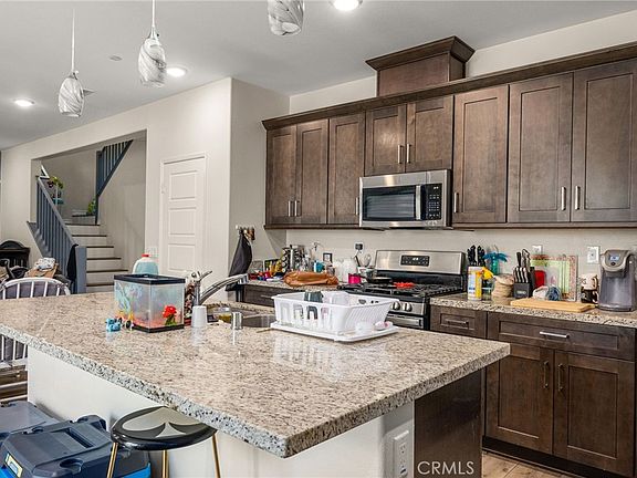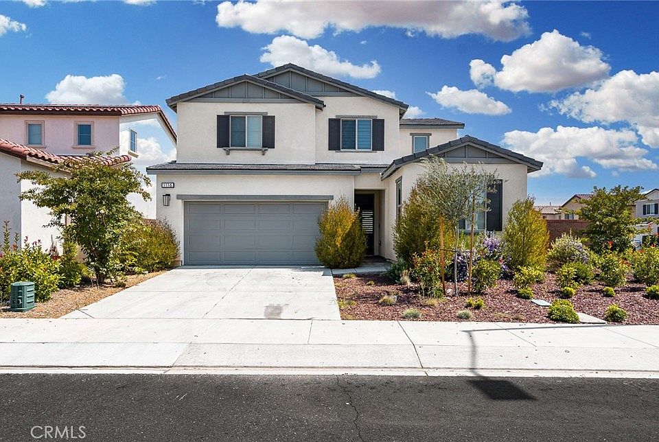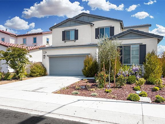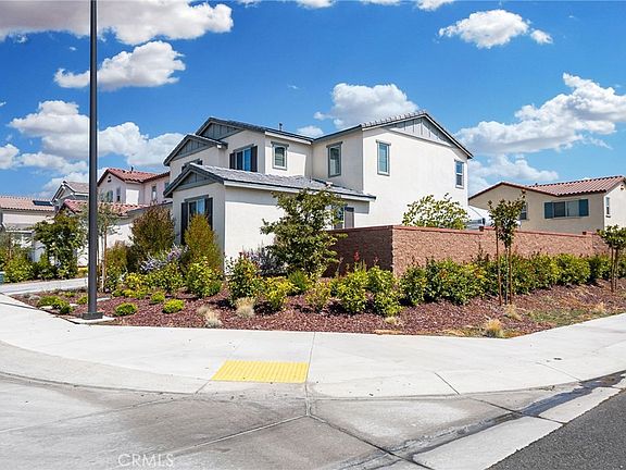 This wonderful “Tripointe Built” smart home is Nestled on a quiet street in one of Banning's newest neighborhoods, "AT WELL" which sits on a 4,892 square foot corner lot. Here are just a few of its many features: Over $43,000 spent in upgrades with the builder, Built in 2021 with PAID OFF SOLAR, Drought tolerant landscaping, manicured shrubbery, and exterior paint scheme enhance it's eye catching curb appeal. The front door opens to the Foyer which leads into a flowing 2,195 square foot open concept floor plan that is in "Pristine Condition" with elegant architectural accents, a designer paint scheme, dimmable recessed lighting, plus an aesthetic blend of ceramic tile flooring and plush carpet. A large picture window bathes the living room in natural light and it also has a mantled gas fireplace with raised hearth. The garage has epoxy floors and a tankless water heater. The chef's kitchen is equipped with an abundance of cabinetry with counter lighting, ample Quartz counters, center island with pendant lighting. Durable dual basin sink with custom facet, built in stainless steel appliances, large breakfast bar, spacious sit down breakfast area, with direct patio access, and the adjoining dining room with access to its very own private patio. Here, you will find it easy to serve and entertain guests. A loft upstairs and A total of 4 bedrooms in which 1 bedroom is located down stairs. The Huge grand suite is located on the second floor and has Zebra shades, with a huge walk in closet all adjacent to the private bathroom, large mirrored vanity, soothing spa tub, glass enhanced shower. 3 bathrooms, 1 is also located down stairs, huge laundry room with abundant storage located upstairs, and hanging rack. Energy efficient dual pane windows help keep utilities low and interior very quiet. Central heat and air for year round comfort. You will appreciate the backyard's Lush manicured landscaping and the community amenities. Plenty of room to park any and all your vehicles and other toys on or off the driveway, or 2 car direct access garage.