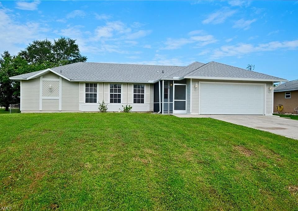 New Roof, New Electrical Panel, New re-pipe New Flooring New New New! and best of all this Awesome Home is Move in ready! Fantastic starter home in established neighborhood. This 1232 ft.² 3 bedroom, 2 bath, 2 car garage home features fresh paint, new tile, new carpet, new baseboards, new granite counters in kitchen and baths, new dishwasher, new hot water heater, new front door and front entry screens, new garage door and opener and brand new roof. AC is newer. Open layout with a split floor plan is perfect for a family. Laundry area is conveniently located inside. Master suite has double sinks and a walk-in closet. Dining has double doors which open to a spacious lanai. Step outside to enjoy THE HUGE SCREENED IN LANAI and Large fenced Outdoor Space. Plenty of room for a pool. Great for first time Home Owners. Enjoy all that Cape Coral has to offer, close to dining, shopping, arts, culture, parks, boating, fishing, golfing and more. This is Florida living at it's Finest!