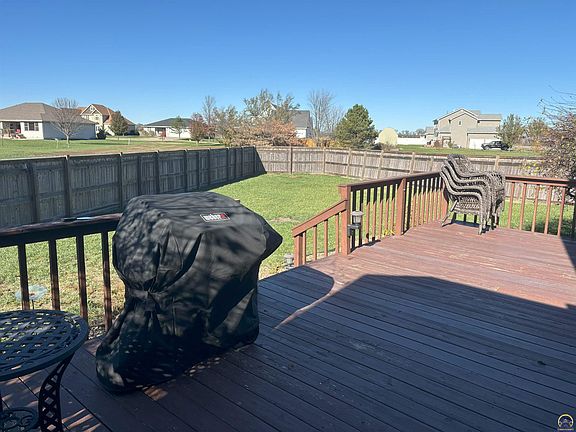 Looking for quiet, small-town living? Here's a lovely three-bedroom, three bath home on a half-acre lot. Three bedrooms are located on the main floor with the primary bedroom having both a full bathroom and walk in closet. An open kitchen, dining nook and living room plus home office completes the main floor. The basement contains a non-conforming fourth bedroom or office, large living space and full bathroom as well. A two-car garage, covered front porch, large deck and full privacy fenced backyard await you. Conveniently located just three blocks from the Burlington high and middle school campus. Some photos have been virtually staged.