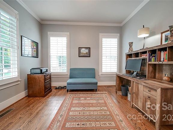Charleston style home with double porches, located in highly desirable Davidson Wood. Home has custom features throughout including 10 ft ceilings, and 8ft doors, artisan plantation shutters, hardwood floors throughout main level. The open concept layout has a large kitchen island, as well as GE Cafe appliances including a 5 gas burner stove. The primary suite is located on main level, with large walk in closet with custom shelving, the on suite bathroom features double vanity, deep garden tub, and large walk in custom tile shower. The upper level features 3 additional bedrooms, 2 full bathrooms, and a large bonus room that could be used as 5th bedroom with two closets. Outside this home features great relaxation areas between the upstairs front porch and the covered flagstone terrace, which is perfect for entertaining. Home is also directly across from the neighborhood greenway. This home is located only 2 miles from Davidson College, and all the great downtown restaurants and shops.
