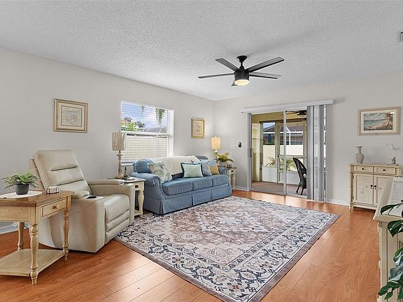 ~$10,000 PRICE REDUCTION~ ~NO BOND~ ~ROOF/HVAC 2018~ ~NO CARPET~ ~GRANITE COUNTERTOPS~ ~FURNITURE PACKAGE AVAILABLE SEPARATELY~ This 2/2 BAJA COURTYARD VILLA home is situated in the convenient Village of SANTIAGO, specifically in VILLA SAN LEANDRO. As you approach, the home welcomes you with beautiful rocks and shrubs, setting the tone for its appealing exterior. Step inside through the TILE foyer, and you'll find a spacious living/dining room combo, perfect for entertaining guests. LAMINATE flooring and UPGRADED LIGHTING enhance the beauty of the main living area. The galley kitchen features a TILE floor, GRANITE countertops, STAINLESS-STEEL appliances, and a CLOSET PANTRY creating a stylish and functional space. The primary bedroom features an ensuite bath UPDATED LIGHTING, MIRRORS and HARDWARE plus a convenient WALK-IN CLOSET. Your guests will enjoy privacy in the 2nd bedroom located right next to the guest bath which also features UPDATED LIGHTING, MIRRORS and HARDWARE. Both bedrooms have been updated with LAMINATE flooring. The home is designed for indoor-outdoor living, with a SCREENED-IN LANAI featuring a painted floor and a beautiful PAVER patio, surrounded by rocks and shrubs for a serene atmosphere. Additional features include a 1-1/2 car garage with a painted floor and ATTIC STAIRS for easy storage. The laundry is in the garage. The property is equipped with a WATER SOFTENER and the Hot Water Heater is 2006. The location is ideal, close to SPANISH SPRINGS, GLENVIEW COUNTRY CLUB, the SAVANNAH CENTER, and SOUTHERN TRACE offering a variety of choices in restaurants, entertainment, and medical facilities.