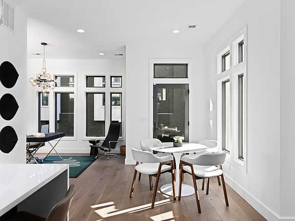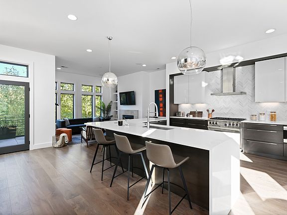 Enjoy skyline views on your rooftop deck w/ luxurious tile pavers, turf lounge area & sustainable outdoor decking (optional gas firepit & customizable kitchenette). Be enveloped by the opulence this bright modern home with full-overlay cabinets, waterfall marble countertops, eye-catching light fixtures, & elegant bathrooms. Crisp white walls punctuated by dark windows, contemporary fireplace & sleek wide-plank wood floors complete the experience. A full Fisher & Paykel kitchen suite await the discerning chef as well.