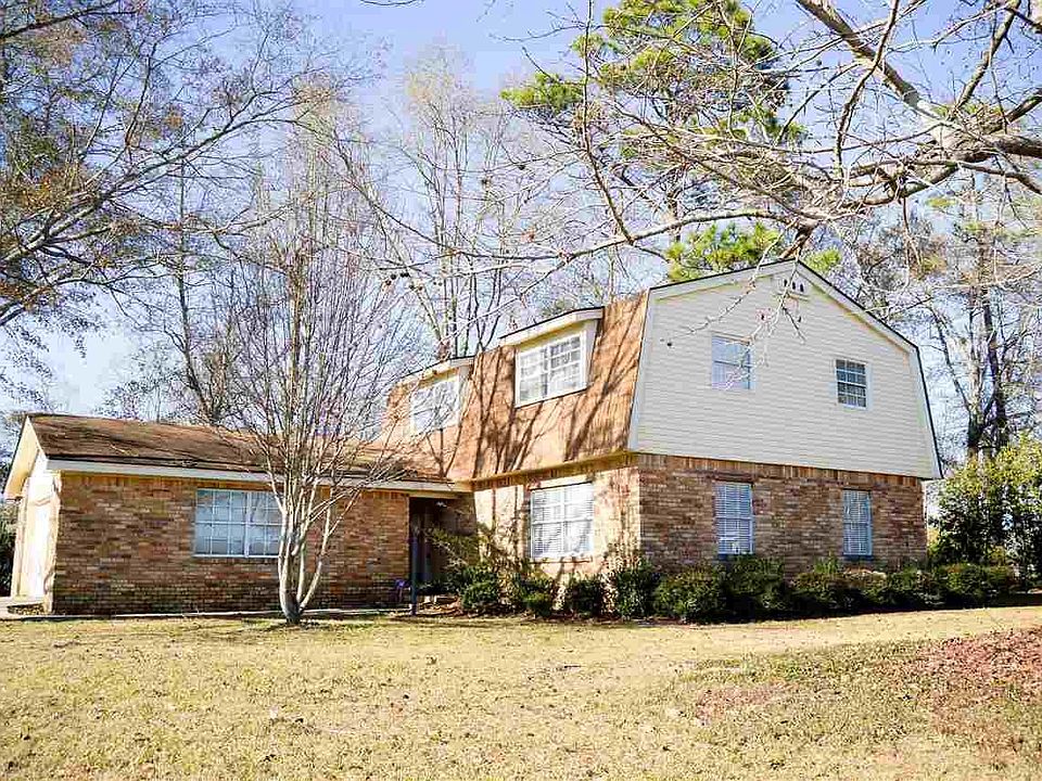 Atmore, AL Beautiful corner lot, wooded. Perfect home for family-larger family. All (4) bedrooms are located upstairs with a full bath for three of the bedrooms and master bedroom features a private bath and two large closets. Downstairs has a large open family room with a spacious formal dining room. Kitchen has a bar with a breakfast nook which over looks the private deck. Bonus is the Den with a fireplace...great area for children playroom. Bottom floor has 1207 sq ft, top floor- 1291 sq ft. New A/c unit for downstairs, replaced in 2016. Double Enclosed Garage..and a separate storage building for lawn care...Call Today for your Showing.