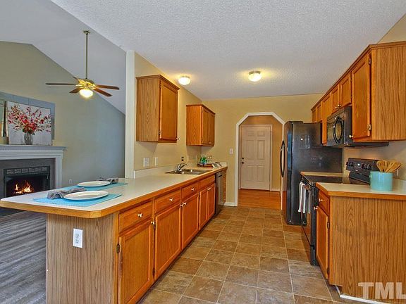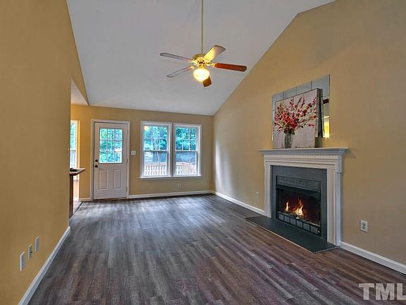 Picture yourself in this perfect ranch style home centered in cul-de-sac. Southern style front porch. Roomy family room with fireplace. Semi open floorplan. Well laid out kitchen with sunny dining area overlooking back yard. New laminate flooring. Fresh paint through out home. Large fenced back yard. Quick access to 40/440. Minutes to Raleigh.