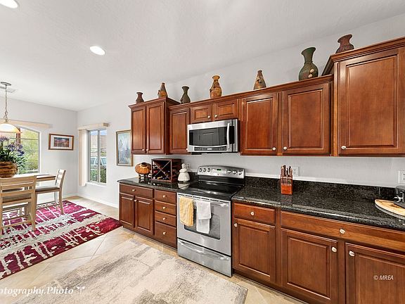 Come check out this beautiful Sage model Sun City home, located in the Split Rail Village which is in close proximity to the Sun City Pioneer Center, putting green, and sports courts. This home has an open floor plan. The kitchen has ample counter space with beautiful granite counters and an abundance of storage. Natural light from all the windows makes this home light and bright. The home overlooks the green space across the street and provides beautiful views of the Flat Top Mesa and Mesquite's amazing sunsets.