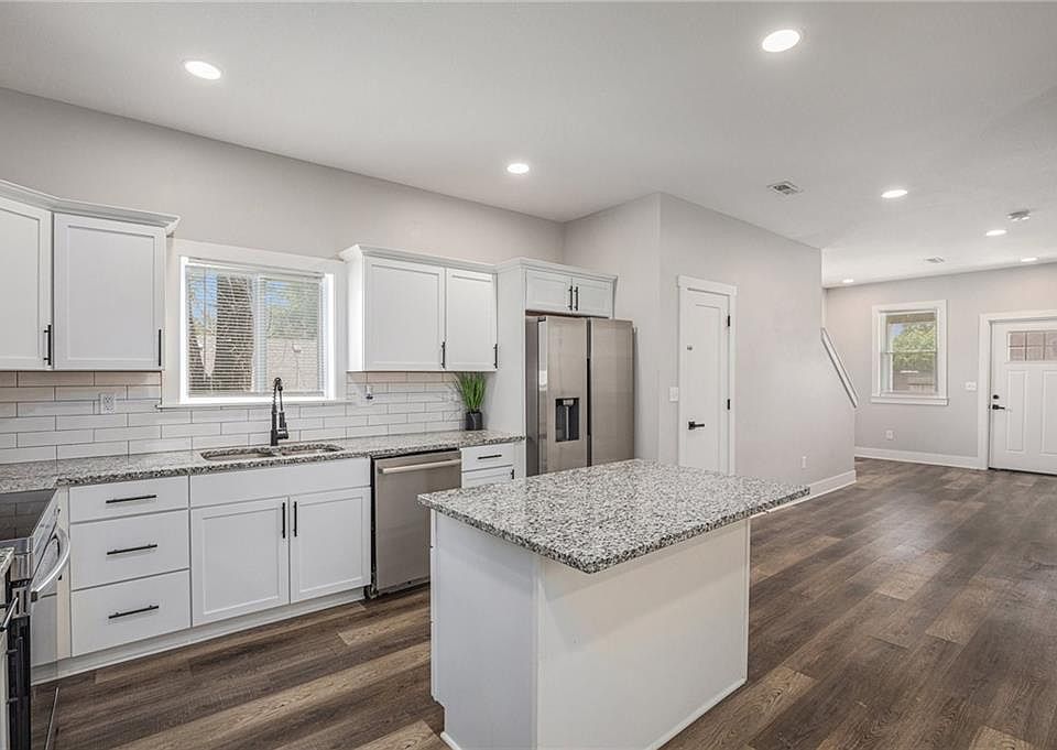 Sleek granite countertopsStainless steel appliancesNew roofCentral islandEnergy-efficient thermal windowsMain-level laundry room