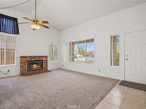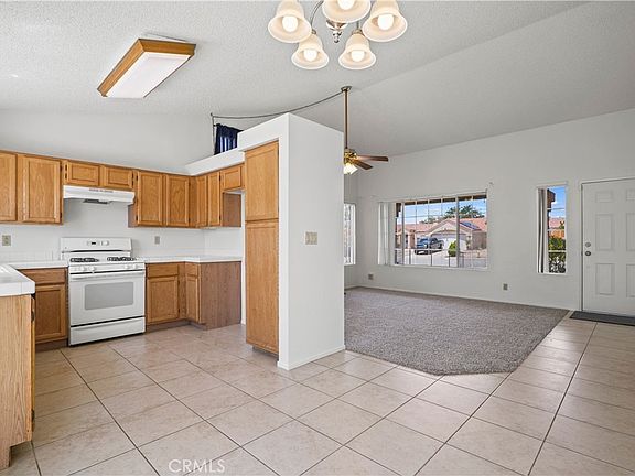 Single Story contemporary home in move in condition, great curb appeal, enter into your great room with vaulted ceilings, newer carpet and a used brick fireplace, attached is your informal dining area and a cooks kitchen with oak cabinets, tile counters, dishwasher, gas range and oven, tile flooring, large master suite with two closets, attached master bathroom with double vanity and a shower, the hall bath has a tub/shower combo, two additional large bedrooms, 4 fan lamps, newer AC/Heat, two car garage, laundry, RV access, large back patio and shed, this home is a winner and move in ready for a fast escrow.