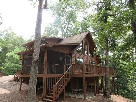 Immaculate 2/2 private chalet w/long range mountain views on over 4 gentle park like acres within 5 minutes of downtown Murphy. Home has a newer addition off the main level bedroom creating a great office/sitting room w/additional closets/pantry space. Upstairs bedroom has a private bath & deck. Gas log stove in living area. Screened entry porch. Home has been freshly painted w/2 coats of Cabot Paint. New HVAC unit 2018. Newer Pella windows. Private well w/whole house filtration system. Double detached garage & separate workshop w/wood heater. Paved driveway off a state maintained road. NO HOA FEES! Close proximity to USFS & Nottley River so there is a lot of wildlife. This is a MUST SEE!