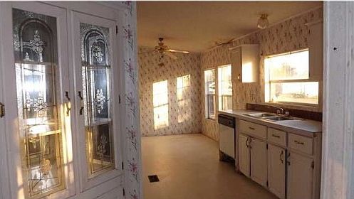 Three bedroom two bathroom manufactured home needing so TLC offered as is. The house has a fireplace, outside storage shed, and a partially fenced back yard.