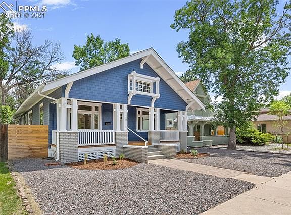 Rediscover Old Colorado City, in this charming gem on the westside of Colorado Springs. This home has a modern design and historical feel that most homes lack. Upon entering, the large front porch welcomes you into the charming, bright sunny living room with refinished hardwood floors, updated light fixtures and an open concept dining area that includes a wood-burning brick fireplace. The kitchen is a modern marvel with quartz countertops and stainless-steel appliances. The main floor features a master bedroom and renovated bathroom with dual granite-top sinks, 2 bedrooms with large closets, fully renovated guest bathroom, and mudroom with laundry hookups. The finished basement features 2 bonus spacious bedrooms with new carpet throughout. The large backyard is perfect for hosting and includes a 2-car garage, and plenty of yard space for kids and dogs to play.