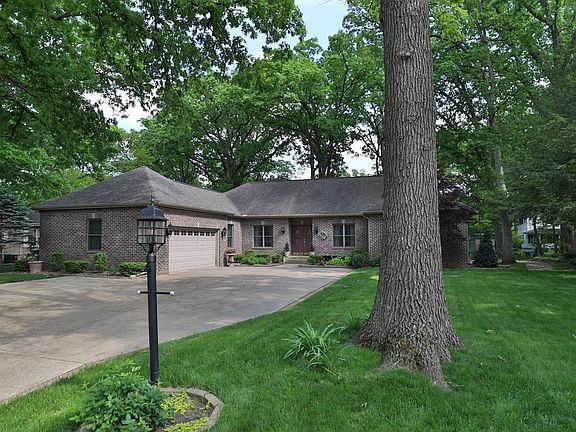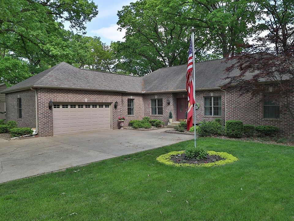 This 3 bedroom, 3 bath Ranch home in beautiful Lake of the Woods subdivision is move in ready and won't last long! This impeccably maintained home has it all. The 10 foot ceilings, open kitchen family room, main floor laundry and hard wood flooring are only a few of the wonderful amenities in this house! The large living room is open to the beautiful dining room enjoying large windows and the peaceful view. The large eat in kitchen with a breakfast bar and vaulted ceilings, are open to the cozy family room boasting a gorgeous stone fireplace and sliding glass doors leading to the serene and wooded back patio and yard. A large primary bedroom suite has two large closets beautiful views as well as a large master bathroom with bathtub and shower. Two additional large bedrooms share a large full bath with a newly renovated/tiled shower. This home has ample storage and is the perfect low maintenance haven!