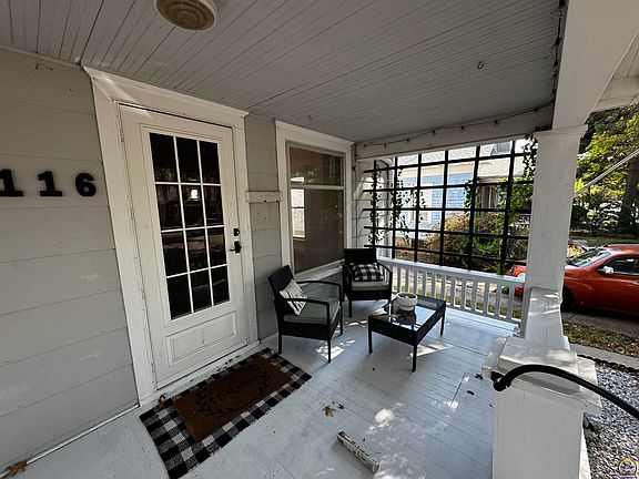 Opportunity Knocks in a Prime Location! This charming 1½-story home blends character with modern updates, offering spacious living across the main and upper levels, plus untapped potential in the basement. The main floor features an updated kitchen and bath, with upgraded electrical throughout. Upstairs, a separate entrance leads to additional living space with its own kitchen—perfect as a private guest suite, rental opportunity, or future primary retreat. The basement includes a non-conforming bedroom and a small bathroom, ready for your vision to transform it into additional functional living space. Outside, enjoy a welcoming front porch, easy alley access to the backyard, and multiple parking options, including a shared driveway on the south side, a private drive on the north, and extended parking off the alley. There's even space for a small yard if desired! Families will love the convenience of being just steps from Walnut Elementary—watch your children walk to school! For students or faculty, ESU’s beautiful campus is just a short stroll away, making this an ideal home for anyone connected to the university. Whether you're seeking a smart investment or a cozy single-family home, this property is packed with potential. Don’t miss out on this fantastic opportunity! Please note - the listing features a few AI pictures to help envision what the home could be with furniture.
