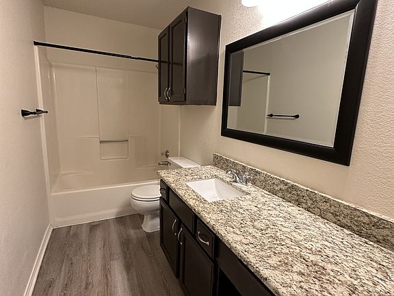 Spacious single-story quadruplex featuring 2 bedrooms and 2 bathrooms. Conveniently located near bike and running trails, schools, and parks, offering an active and family-friendly lifestyle. This charming residence boasts elegant wood-like flooring and carpeted bedrooms, complemented by 2-inch blinds for added privacy and style. The kitchen is equipped with premium granite countertops and modern appliances, including an electric range, refrigerator, dishwasher, and garbage disposal, ensuring convenience and functionality for daily living. Outside, enjoy the comfort and seclusion of a private backyard enclosed by a privacy fence, perfect for outdoor relaxation and entertainment. Additionally, benefit from the convenience of rear covered parking for two vehicles, enhancing accessibility and security. Maintenance of the front yard is included, providing a hassle-free living experience. Experience comfort, convenience, and quality in this well-appointed duplex residence. Tenant is responsible for the care of the private back yard. Pets allowed with approval. $200.00 pet deposit per pet. (2 pet maximum) Unit amenities Carpet, Carport, Ceiling fan, Climate control, Dishwasher, Disposal, Fenced yard, Laundry hookup, Mirrors, Pantry, Pet friendly, Private patio, Refrigerator, Stove and oven, Vaulted ceiling, Vinyl floors, Walk-in closets