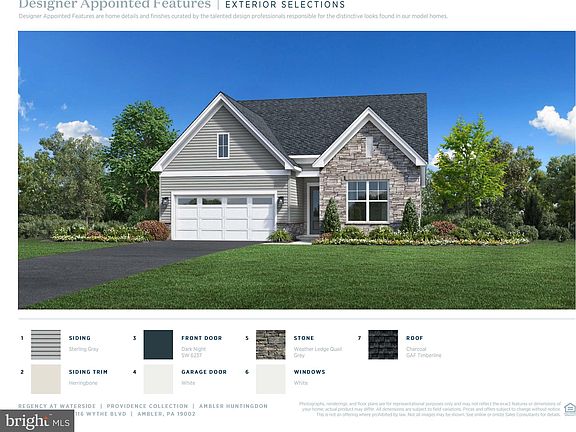 Welcome home to Regency at Waterside and the Ambler Huntingdon featured in our Providence collection. This Quick Move-In home is available for a July delivery. Our amazing Design Studio has selected the latest interior most pleasing color palette that will wow you! The open concept home design showcases one story living at its finest including 2 bedrooms and 2 baths on the main floor along with a flex space. The open kitchen and great room with gourmet stainless steel appliances and large center island will be ideal for entertaining guests. The highlight of our amazing community is our 10,000 square foot clubhouse featuring an indoor pool, bocce courts, fitness center , putting green, dog park and so much more. Builder incentive applied to price shown, make an appointment to see this home today.