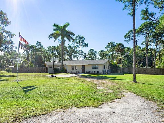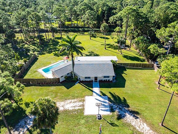 WELCOME HOME to serenity and country living at its best! This beautifully renovated and upgraded CBS home is a (4) bedroom, (2) full bath, (1) bonus room with private entry and perfect for a mother-in-law suite or office and rests on a premium lot that features; a 1.25 acre lot with no pond, circular driveway with concrete slab, fully fenced backyard and just steps away from a quiet paved road. ENTERING this charming home brings you to a designer glass hurricane impact front door and into; a spacious family room with a custom wood plank TV wall, tile flooring and hello 21'x19' renovated kitchen with cabinets and granite galore, 2018 stainless steel appliance package, pantry, solid wood farm door and pass through patio window. PASSING through you will discover that this gem has been (CLICK well maintained, lovely color palette, fantastic split floorplan with large rooms, elegant master suite with gorgeous flooring and a 11'x5' walk-in closet. In addition, there are countless recent renovations to include; crown molding, renovated and upgraded baths, wainscoting, fans and fixtures, knockdown ceilings throughout, large baseboards, carpet, recessed lighting and much more! STEPPING OUTSIDE into the screened in 25' x 10' lanai brings you to a spectacular ceiling, sparkling pool, green space galore, mature palm trees, pines, cabbage palms and enjoy fresh avocado off your own tree. Simply, a perfect space for relaxing, family gatherings, entertaining and outdoor fun! HELLO SAVINGS & PEACE OF MIND from the 2018 hurricane protected windows and doors, 2008 shingle roof and 2017 flat roof, 2016 air conditioner system to also include new insulation and ductwork and 2018 washer & dryer and brand new community fiber optic cable for lightning speed Internet. LOCATION... LOCATION... LOCATION... This gem is tucked away in one of the MOST sought after areas in The Acreage with shopping and dining just around the corner and nine quaint parks with countless activities such as; free community concerts, play grounds, picnic areas with grill pavilions, fishing, fitness trails, equestrian trails, football/baseball/soccer fields, skate and equestrian parks, basketball/volleyball/racquetball, tennis and is located just minutes to everything one could possibly desire; Florida's Turnpike, I-95, Palm Beach international Airport, world class shopping, fine dining, arts, entertainment, world class equestrian shows and facilities, beaches, theater, golf, business and economic development, education, green living and so much more! COME AND SEE why The Acreage is very sought after and take in the fresh country air and peaceful sounds of nature. Bring your toys, pets or just about anything your heart desires... The possibilities are endless! Come and enjoy your life away from the hustle and bustle and your evenings gazing at the stars. Run like your pants are on fire, this beauty will not last long and be sure to check out the VIP discounts you will be entitled to at closing.