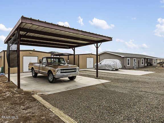 Nestled on a sprawling 2-acre parcel, this meticulously maintained 4-bedroom, 2-bathroom manufactured home offers an enticing blend of comfort and functionality. Thoughtfully upgraded in 2016, this property boasts numerous features including wheelchair ramp access, a new water heater, and a recently replaced roof. Inside, enjoy the convenience of vinyl plank flooring, complemented by curtains and vertical blinds throughout. Outdoors, discover five versatile outbuildings, two carports, and lush landscaping complete with fruit trees and a convenient in-ground irrigation system. The workshop is a handyman's dream with its insulated walls, air hose hookup, and 220-amp electric service, while the backyard offers additional storage, a firepit, and ...