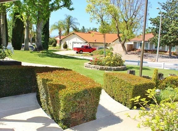 Single story Semi Custom in Rural Moreno Valley. A Stunner from home from head to toe. Manicured front yard w planter boxes, stucco fences & walls, GATED RV PARKING and split rail fencing, you'll fall in love! Custom wood doors welcome you into a formal entry with OPEN BEAM ceiling in the family room with fireplace and a just added bar area, featuring built in sink, mini fridge & GRANITE countertop. Formal Living Room, Formal Dining Room. Kitchen's been been remodeled w GRANITE countertops, a movable island, pendant lights, built in desk, pantry, nook & loads of cabinets. Arched doorways and SPANISH ACCENTS add charm and grace to lovely home. The master bedroom has a cozy corner BRICK FIREPLACE and remodeled master bath with GRANITE countertops, a built-in vanity & an inviting glass block and tile shower. BUT THAT'S NOT ALL! Step outside into your own personal vacation spot. This private backyard was made for family BBQs, receptions & Parties! HUGE COVERED PATIO, more manicure