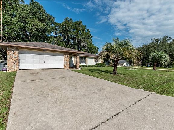 Spacious and versatile, you'll find this 2/2/2 perfectly positioned on a double lot in quiet country setting yet just minutes to all the city conveniences. With over 1500 sf of living space, this home features: inviting foyer; spacious living room with tons of natural light; dining area with sliders to the sunroom; eat-in kitchen with plenty of cabinet/counter space & all appliances; master with walk-in closet and glass enclosed walk-in shower; 2 guest bedrooms; guest bath with jetted tub/shower; large sunroom (currently used as a bedroom) under heat & air with a kitchenette with sink; and 2 back patios with a little fenced area perfect for the dogs. The rest of the property is partially fenced and offers 2 storage sheds + a riding mower. This home sits on a double lot (.52 acres) and provides a few opportunities for the new owner...leave as is, build another home on the 2nd lot, or sell the extra lot. A super corner location on a paved road in a wonderful neighborhood between Downtown Dunnellon and Ocala.