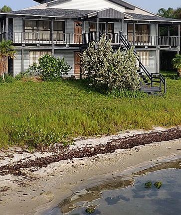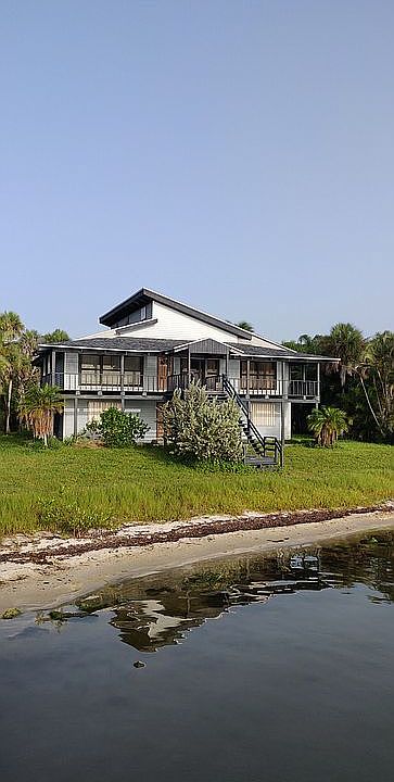 Located on 2.28 acres on the Indian River, this 2-story modern design features an upper deck with amazing views! There are three exterior staircases and one interior with a motorized stairlift. There is a large living room and dining room. The kitchen is big enough for several cooks. The soaring ceilings are wood with beams. Two bedrooms on the upper level that share a Jack-and-Jill bathroom. The lower level has one bedroom and one bathroom with an addition room for crafts, workshop, laundry or could be converter to additional living quarters for an apartment. The over-sized 2-car garage is built in. There is an additional 2-car detached garage for all your storage needs. The wood dock has a boat house to even store you boat. Recent improvements include; new flooring, roof, range, refrigerator and a jetted bathtub. Several front windows are impact resistant. Use it as it is or renovate to your personal taste.