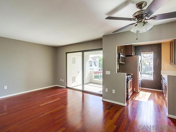 Highly Upgraded and remodeled top floor one bedroom and one bathroom unit in central Mira Mesa ! This home welcomes you with abundant natural light, opening up to your south-facing private balcony with laundry in unit, hardwood floors, stone counter-top, stainless steel appliances(Samsung french door fridge), newer dishwasher and microwave, and upgraded cabinets. The community pool and additional parking is just around the corner.