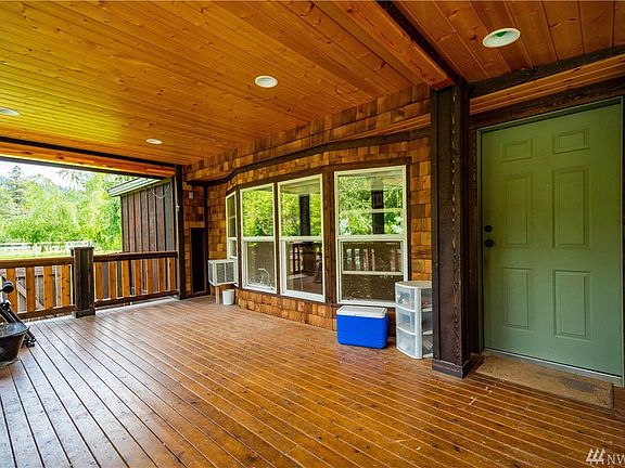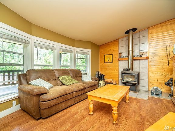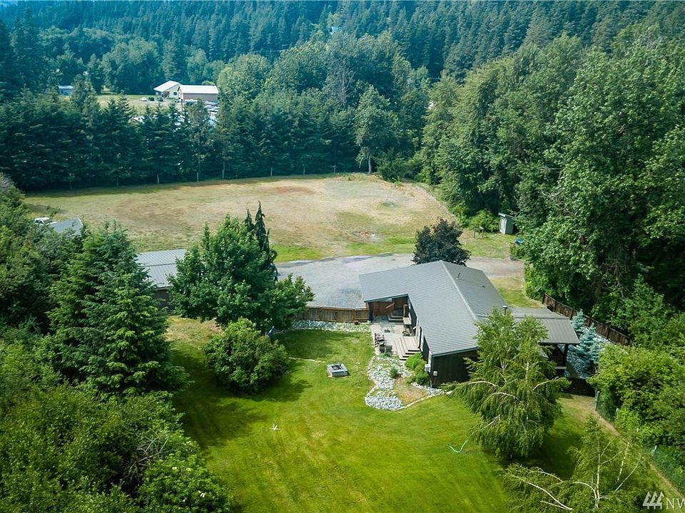 Chumstick home with vaulted ceilings, bright kitchen, and outdoor space. 4.64 acres, private, 3 bed and 2 bath home. Kitchen with all appliances and white cabinetry leads to formal dining room and back deck. Cozy living room has wood burning fire place, with wood paneled accent wall. Master with walk-in closet. Detached garage has studio apartment complete with kitchen, bathroom, bedroom, and washer/dryer. Plenty of room for RV parking, recreation, and gardening with fenced round pen.