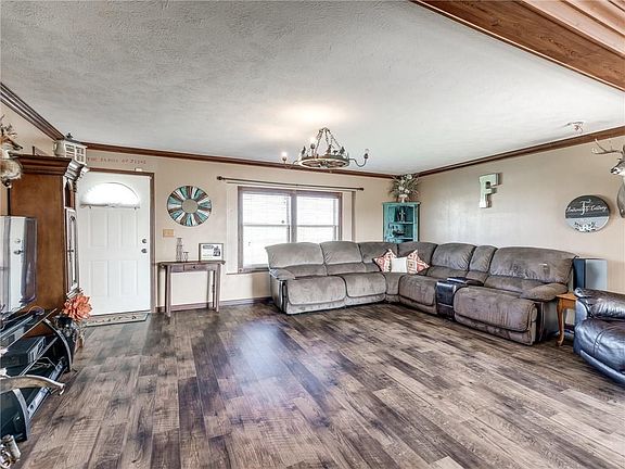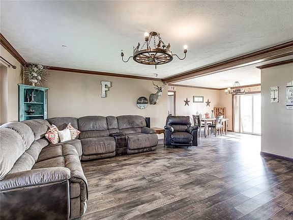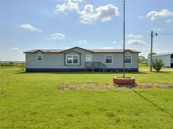 Now offering a great multi-wide mobile home consisting of 1952 sq/ft, on 2.5 acres. The home has a nice open floor plan with 3 bedrooms (extra large master bedroom with ensuite bathroom & large walk in closet), 2 full bath, central heat/air conditioning, large open living room/dining room, nice size kitchen/pantry area (refrigerator stays with home), large laundry room w/sink and cabinets. The home has crown molding, ceiling fans and lots of storage cabinets. The property is also improved with a 30'x 40' shop building (concrete floor, insulated, electric, 10'x10' overhead door, walk-in door, and small office), 20'x 44' 3 side metal shed on concrete, storm shelter, and wood deck on front and back. Call for a showing!