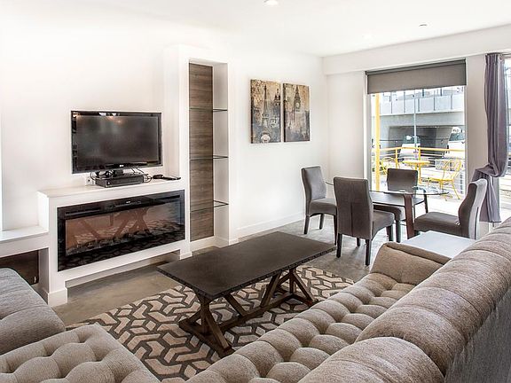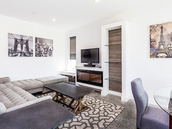 Stunning 2 bedroom furnished front unit with a large balcony. SHORT OR LONG TERM AVAILABLE. Open and light filled living areas with sliding glass doors leading to the balcony, creating an indoor outdoor ambiance, concrete floors, hi ceilings, recessed lights, fully appointed with refined finishes, neutral color schemes, natural influences and unique touches. Living room area with a modish fireplace. Gourmet kitchen with stainless steel appliances, breakfast nook with built-in seats and a breakfast bar. Luxe bathrooms with rain shower heads. In home washer and dryer and an in home safe. All utilities included. Located in one of LA's most central locations. Just a few moments from the freeway and expo making for a quick and worry free commute. Contemporary and incredibly convenient living experience on the west side. Ask for short term price