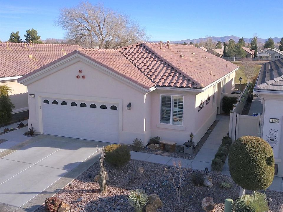 PRIME GOLF COURSE LOCATION! This SAGE model is situated on the Third Green. The view of mountains and golf course can be enjoyed from a wind and sun protected split Alumawood patio. The rooms are spacious. Current owners have installed new dishwasher/micro and stove, wood shutters, some windows, lighting fixtures and extended concrete work, plus have Xeriscape front yard. Home is great move in ready condition! Sun City is an active 55-plus gated community. Come live the good live in a resort-like atmosphere!