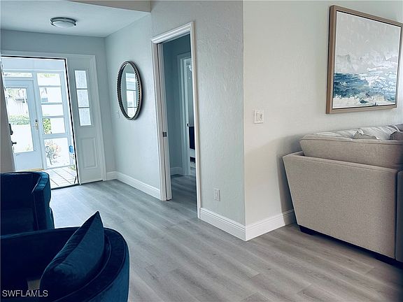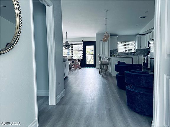 Wonderful single-family condo (Duplex) for year-round or seasonal living in the gated community of Cinnamon Cove. This home has been remodeled in a modern style with lots of upgrades like the large island with a wine fridge, floated floors to create a large living room area, and beautiful LVP flooring throughout. The cathedral ceilings in the living room, large windows, and luxury chandeliers allow this home to light up both inside and out. Turnkey, all you need to bring is your travel bag. This home is done to the highest level and ready for its new owners. Only 4 miles to Fort Myers Beach or the Sanibel/Captiva causeway, make the most of your time while here with limited travel time. The perfect location to beaches, shops, and restaurants. HOA includes flood insurance. Taxes are approximately $4200 a year, and HOA is $2520 a quarter.