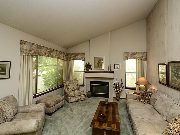 This Patio home is ideally located on a cul de sac in the exclusive Rodeo Drive Community. This ranch style home in impeccable condition is updated as well. Slab stone counter top in the kitchen, a stainless steel refrigerator & all other appliances are included. 2 bedrooms + den on the main level. Vaulted ceiling living room adds volume to the feeling of 'openess' with a gas fireplace as the focal point. The mostly finished basement has a family room with a 2nd fireplace, bedroom & updated bath & ample storage area. Notice the newer furnace, humidifier, intercom system, Murphy bed, wood floor foyer, did I mention the great location and the central air conditioning. Interior cul d sac location.