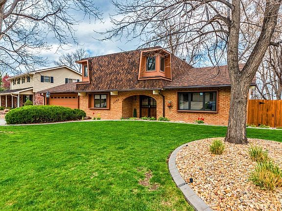 This desirable Applewood Knolls home sits on a beautifully landscaped 1/4 acre lot, backing to the ditch with water rights. The house has been meticulously updated and features a unique multi-level floor plan with designer finishes throughout. All 3 bedrooms are upstairs, along with a beautifully remodeled full bathroom. Additionally, the master suite features a newly renovated master bathroom with large walk-in shower. The kitchen opens to an outdoor retreat, featuring a covered mahogany and red wood deck with privacy/sun shades. No detail was missed, including high end hard wood floors, leaf guard gutters, stunning wood beams, pella windows, original brickwork fireplace, and a new roof in 2017.