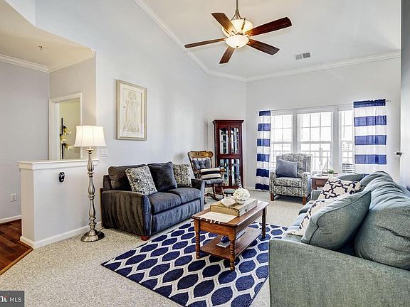 Top Floor Condominium with Soaring Vaulted Ceilings; Lofty Windows and Light Filled Interiors; Crown Molding, Chair Railing, and Box Wainscoting ; Gleaming Floors; Stainless Steel Appliances; Granite Counters; Ample Cabinetry; Built-In Shelving; Master Suite with En-Suite Bath and a Walk-In Closet; Exterior Features: Deck, Exterior Lighting, Community Pool, Community Tennis Courts, and Walking Trails.