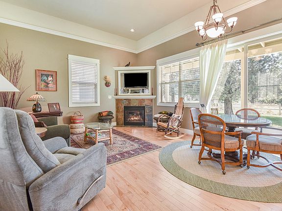 Adorable Home! This hard-to-find single level home has a single car oversized Garage & storage too. This home features,2 bed, 2 full baths, an office that could be a bedroom, gas range, Custom cabinets in kitchen, Stainless steel appliances, Gas range, Wood floors, Master has an extra closet. Back patio backs up to Common area, so very quiet and private. Great location close to sport center, pickle ball, splash park, swimming pool, trails. Enjoy Eagle Crest Amenities. Built by Sun Forest. No commission on seller paid concessions. Property is connected to an onsite septic with dosing tank and community sewer and well. Dosing tank maintained by the HOA. Sewer and septic is serviced by Orgon Water Utilities