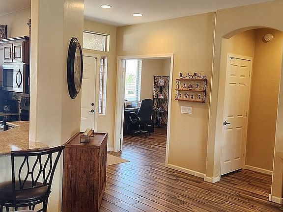 This is a beautiful energy star single family home that was built in 2017. It has two large bedrooms with a den that could be used as a third bedroom. Upgrades include wood look porcelain tile plank flooring, alder cabinets, Cambria quartz countertops in kitchen, master bathroom and shower, water softener, whole house water filtration, security screens, extended cement patio with full covered awning and a shop/shed attached to the home. Front & back patio floors, garage and driveway are epoxied. Built in outdoor kitchen, hot tub. Back patio has electric sun shades with remote.