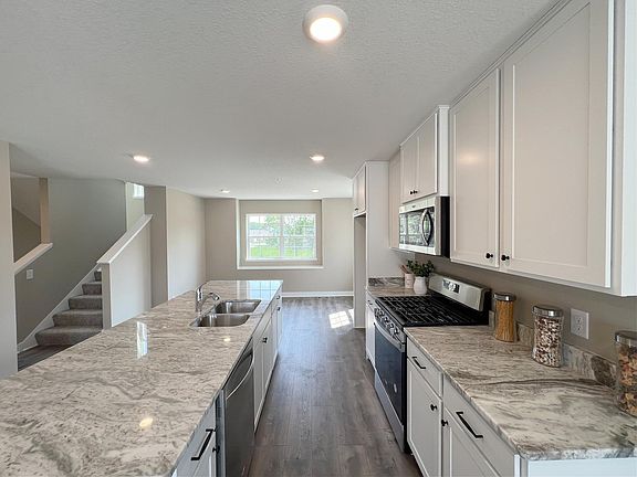 Light, bright and airy, this 3-level Caledonia townhome by D.R. Horton is the perfect alternative to renting! Experience another new construction opportunity from D.R. Horton, America’s Builder! Please ask about the 5.99% interest rate incentive available on this home, and how our additional incentive could allow you to buy the rate down lower! Ready to close, this amazing townhome is in a residential neighborhood with easy access to Hwy 169. The Caledonia has 3 bedrooms and laundry upstairs, including a primary suite with a walk-in closet and ¾ bath. Finished lower level bonus room is perfect for guests, home office, or fitness space. Enjoy the designer inspired cabinets, expansive granite island, vented microwave hood and gas range. Smart home package, premium carpet and wood laminate, Sherwin Williams paint, whole house humidifier, air exchanger, efficient furnace and deck off the main level are included with every home! Private Dog Park, playground, and professionally managed HOA.