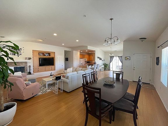 Entertainer's Delight can be yours in this desirable Chapel Lane community. Beautiful Open Concept, Move-In Ready 3 bedroom, 2 bath Single Story Condo built in 2001 features 1,730 square feet with low HOA! Adorned with High ceilings, Recessed lighting, wood floors, dual pane windows and Air Conditioning too! Relax and Enjoy in the Enormous Living Room with wood burning, gas fireplace, Built-In Media Center and Formal Dining plus eating area/bonus room and breakfast bar with direct access to private patio with vegetable garden. Perfect patio for entertaining and friends year round! Kitchen features Brand New Dishwasher, Ample Cabinet and Pantry space with pullout shelves. Oversized Master Suite has Large Walk-In Closet and private En suite master bath with dual vanity sinks, soaking tub and shower. 2-car attached garage with storage and laundry hookups. Enjoy the community Spa, Playground and Recreation Room.