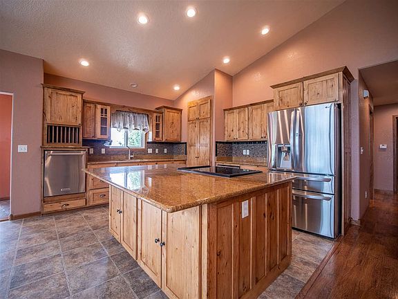 Exquisite home with 5 bedrooms, 3 bathrooms 2068 sq ft main level finished, 1508 sq ft basement with 986 sq ft finished totaling 3054 sq ft finished. Carpeted bedrooms, laminate living room flooring. 3 bathrooms with tiled floors. Cathedral ceilings in living room, dining room & kitchen, present great views of the Black Hills. Large granite island with electric flat top stove. Entry/mud room with stamped concrete. Main floor office 11x11; Laundry room (with sink) 9x9 right off garage. Ceiling fans in all 5 bedrooms plus sunroom. Large Master bedroom with open door concept walk in closet. Main floor laundry. Large attached 26' x 26' garage.