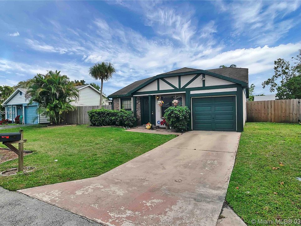 LOVELY, 3 BEDROOM 2 BATH COTTAGE STYLE HOME WITH CATHEDRAL CEILINGS, BEAUTIFUL REAL WOOD FLOORS IN LIVING ROOM, KITCHEN, DINING ROOM, AND BEDROOM. 42" CUSTOM WOOD CABINETS IN KITCHEN WITH NEWER APPLIANCES AND CUSTOM TILED COUNTERS & BACKSPLASH. FRENCH DOORS LEAD TO SCREENED PATIO W/JACUZZI AND OVERSIZED FENCED BACKYARD WITH ENOUGH ROOM FOR 2 POOLS. IN GROUND SPRINKLER SYSTEM AND FULL HOUSE ACCORDIAN SHUTTERS. COMMUNITY POOL/PLAY AREA. TRULY A MOVE-IN BEAUTY AND CONVENIENT TO EVERYTHING. DON'T WAIT, MUST SEE, WON'T LAST!!!