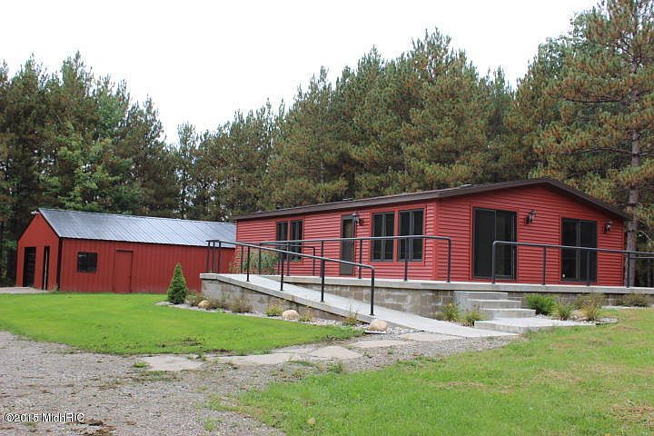 Clean as a whistle and ready to move into with newer carpeting and freshly painted. Home includes a handicap ramp for easy access to porch. a 30 x 40 pole building with eclectic for all your up-north toys. Circular drive, room to expand plus a fire pit for your enjoyment. Located close to thousands of acres of State Land and National Forest. Not far from the Little Manistee and the Sauble River. Only 10 mile to Lake Michigan.