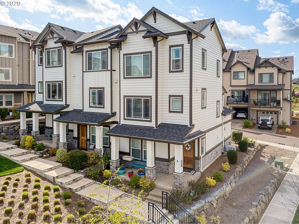 Stunning townhome in coveted Villebois location! Main level features open concept floor plan, high ceilings, & upgraded laminate flooring throughout. Gourmet kitchen with slab granite counters, s/s appliances, & large island with breakfast bar. Spacious master suite, upstairs laundry, & loft with views. Bonus lower level bedroom suite - perfect for office or den. Inviting front porch overlooks the beautiful community greenspace! Walking distance to community center, pool, & parks. Welcome home!