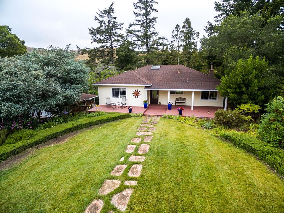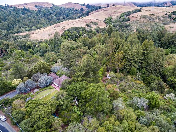 Rare Opportunity. Location, Views, Sun, Decks, Natural Light. Turn-key home. Private, sunny 1.3 ac. Open Space on 3 sides w/permit for hiking. Flowering plants & fruit trees. Trail thru backyard leads to redwoods, creek, native vegetation on open space land. Seating areas w/ambiance, incl Solarium w/deck. Indoor-outdoor living-decks abound. Lg master suite w/private entry. Usable Land, poss horse property. Parking for trailer, boat, RV. 11 gpm well with ozone & R/O. Woodside 15 mins. Stanford 25 mins.