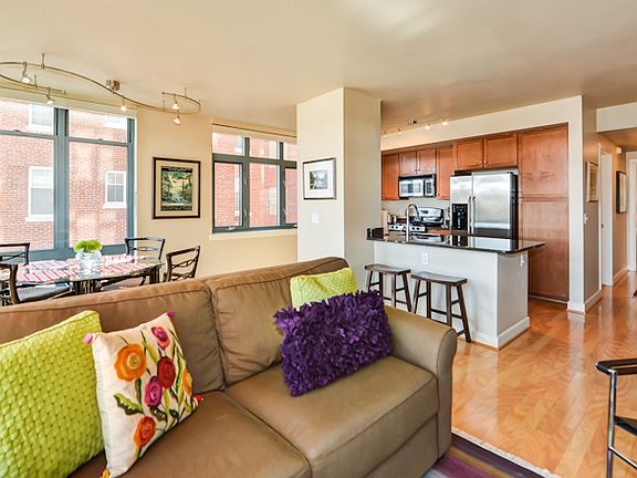 Sleek, modern and bright CORNER UNIT w/garage space, extra storage & balcony, 3 blocks from Mt Vernon Convention CEnter Metro, minutes to the most vibrant and hip areas in the city: Logan Circle, City Center, Blagden Alley and Shaw; can t get better than a walk score of 98! Unit features an open floor plan w/floor to ceiling windows, hardwood floors throughout, gourmet kitchen w/granite island &SS appliances, gas cooking, washer/drier in unit, generous closet space w/ 2 customized build-ins. Building amenities include a rooftop terrace w/BBQ area overlooking DC skyline, gym, concierge/security 7 days/week, pet friendly building! Added convenience: CVS & coffee shop on a ground floor of building! Minimum 12 months rental Renter is responsible for electric bill