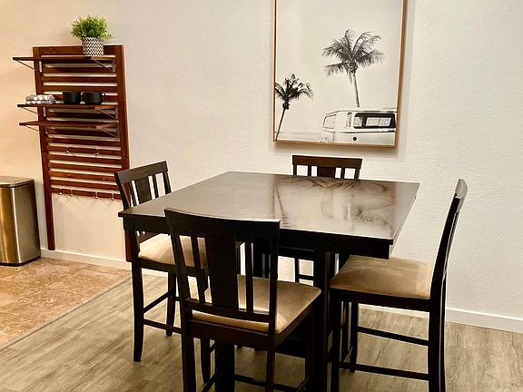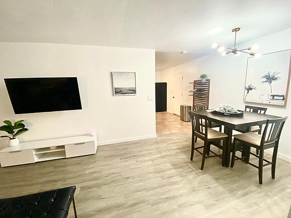 Contemporary fully furnished 3 bedroom 1 bath home recently updated, vinyl floors, tile bathroom and kitchen, new fixtures and electrical, new whole house AC unit, new hot water heater, updated decor and new windows. Covered patio. Small animal considered with deposit. 1 year lease. Deposit of $1600 required. Additional $400 nonrefundable deposit for small pets. Please submit an application through Zillow to see the property.